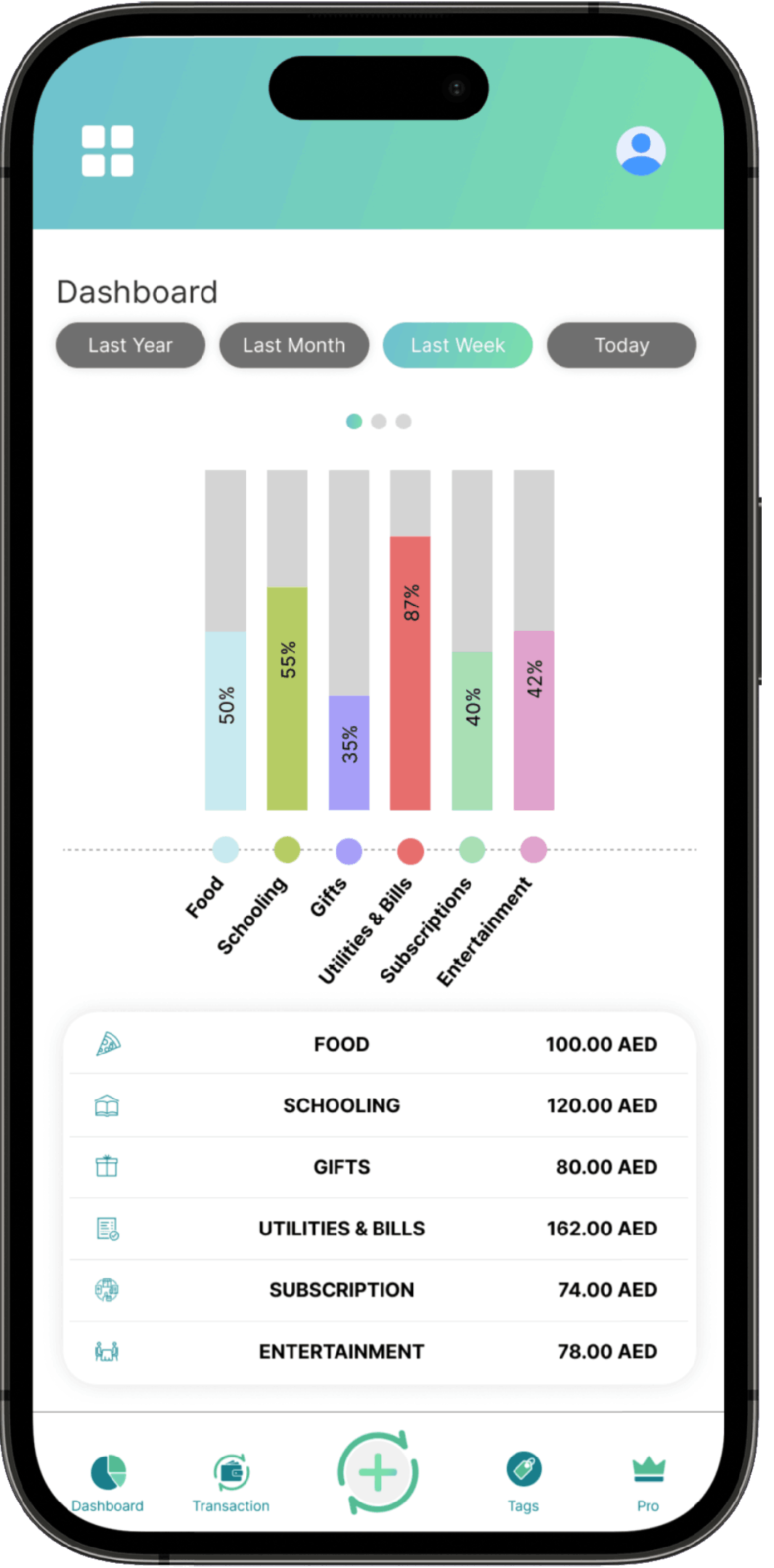 Monee.ae allows you to set your budget per category and helps you discover your spending habits